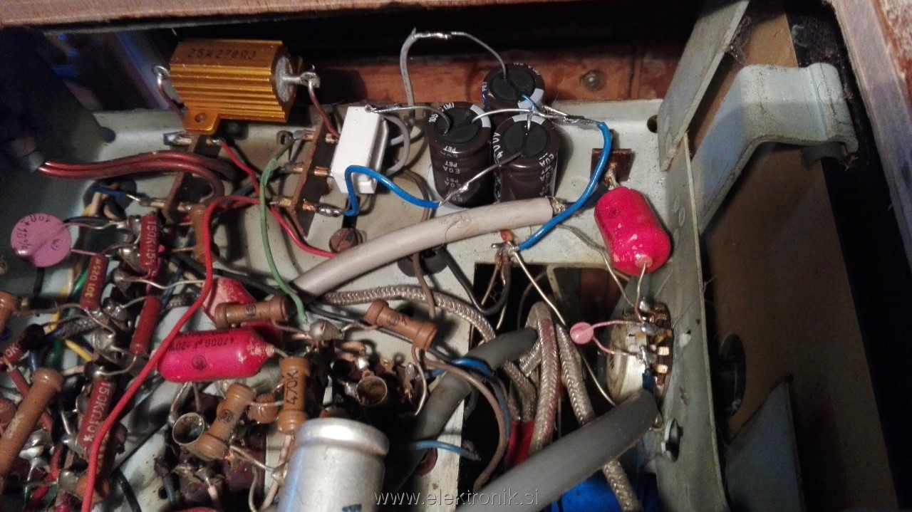 Ko začnem s popravilom takega aparata, običajno menjam kar vse kondenzatorje, posebno so kritični folijski kondezatorji od Iskre rdeče barve.